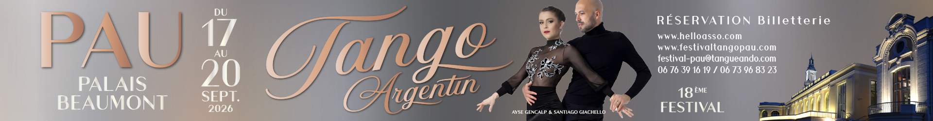 Pour sa 18e édition, l’association Tangueando Pau vous donne rendez vous du 17 au 20 septembre 2026 à Pau pour quatre jours entièrement dédiés au tango.